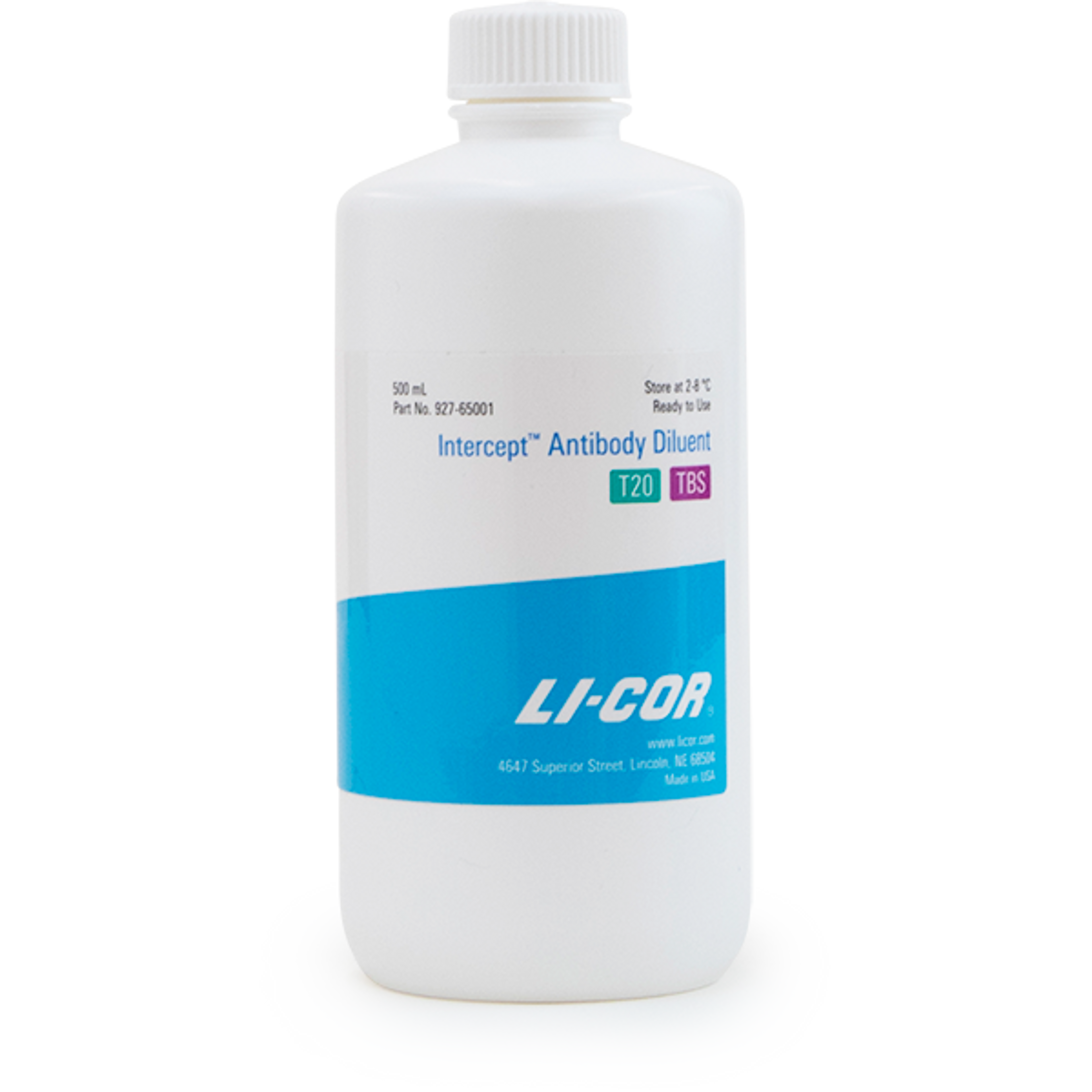 Intercept T20 (PBS) Antibody Diluent improves the specificity of the primary and secondary antibodies, reducing off-target effects.The diluent contains Intercept (PBS) Blocking Buffer preformulated with Tween® 20 for use in a phosphate-buffered saline (PBS) system.