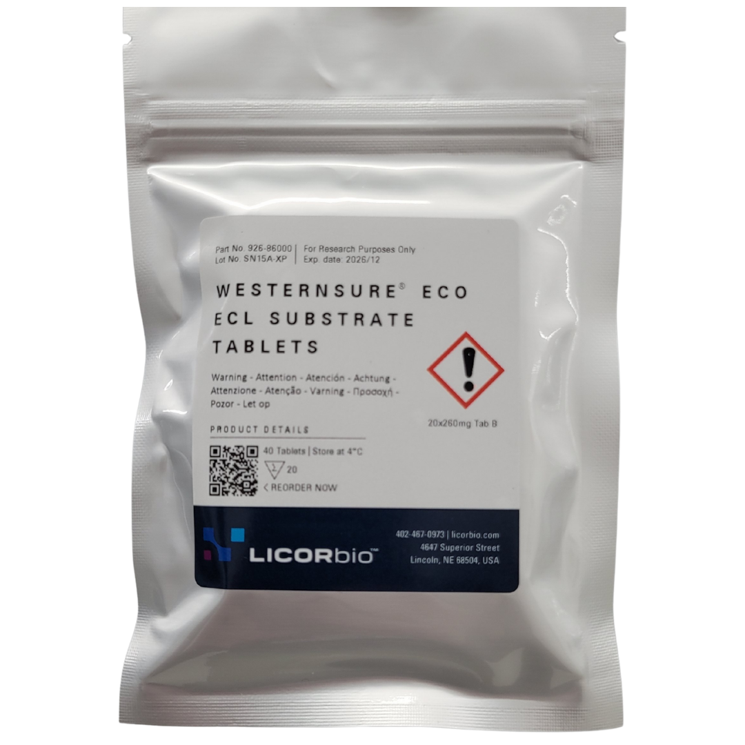 WesternSure Eco ECL Substrate delivers enhanced sensitivity for detecting horseradish peroxidase (HRP) on immunoblots. It comes in an eco-friendly tablet format that maintains performance without compromising sensitivity.